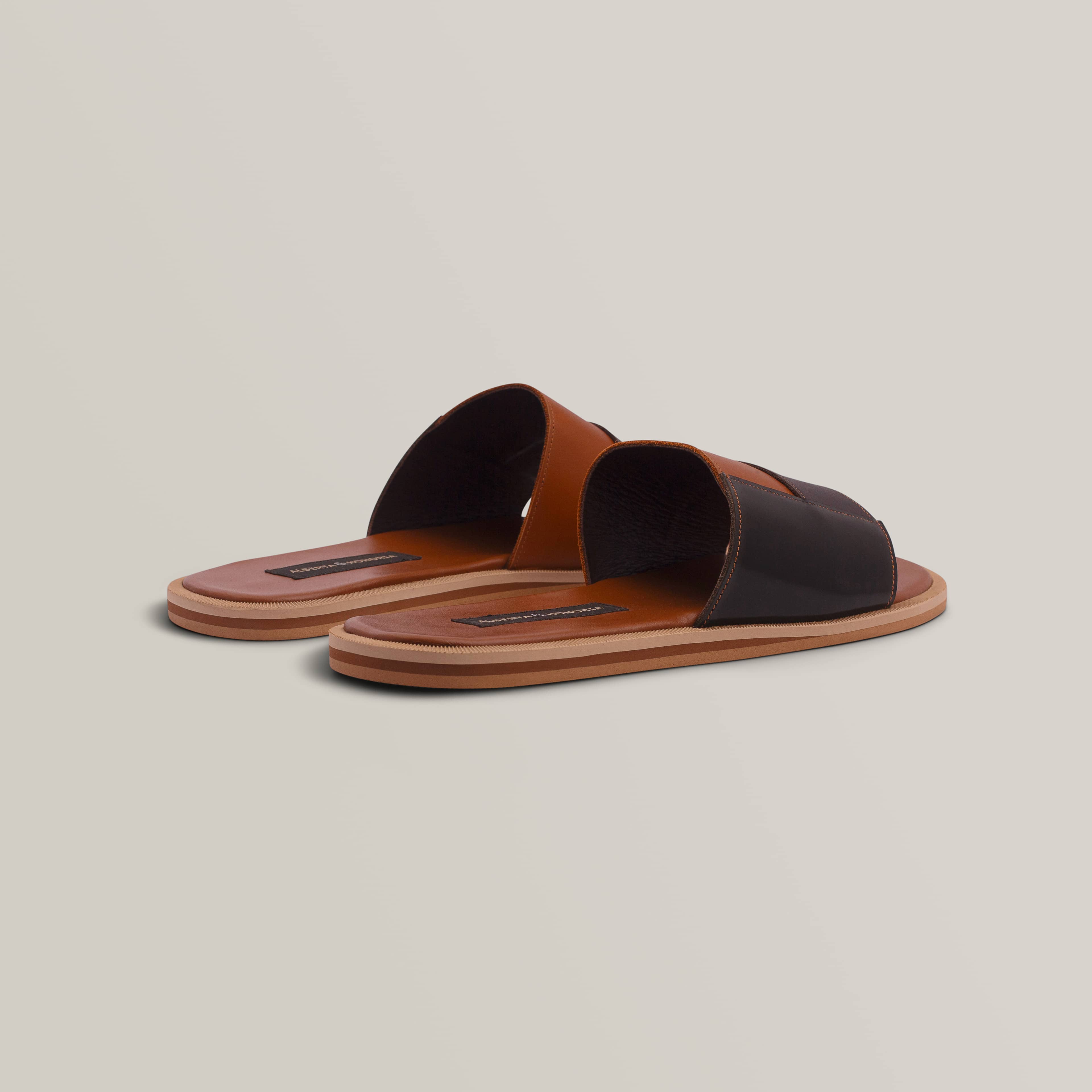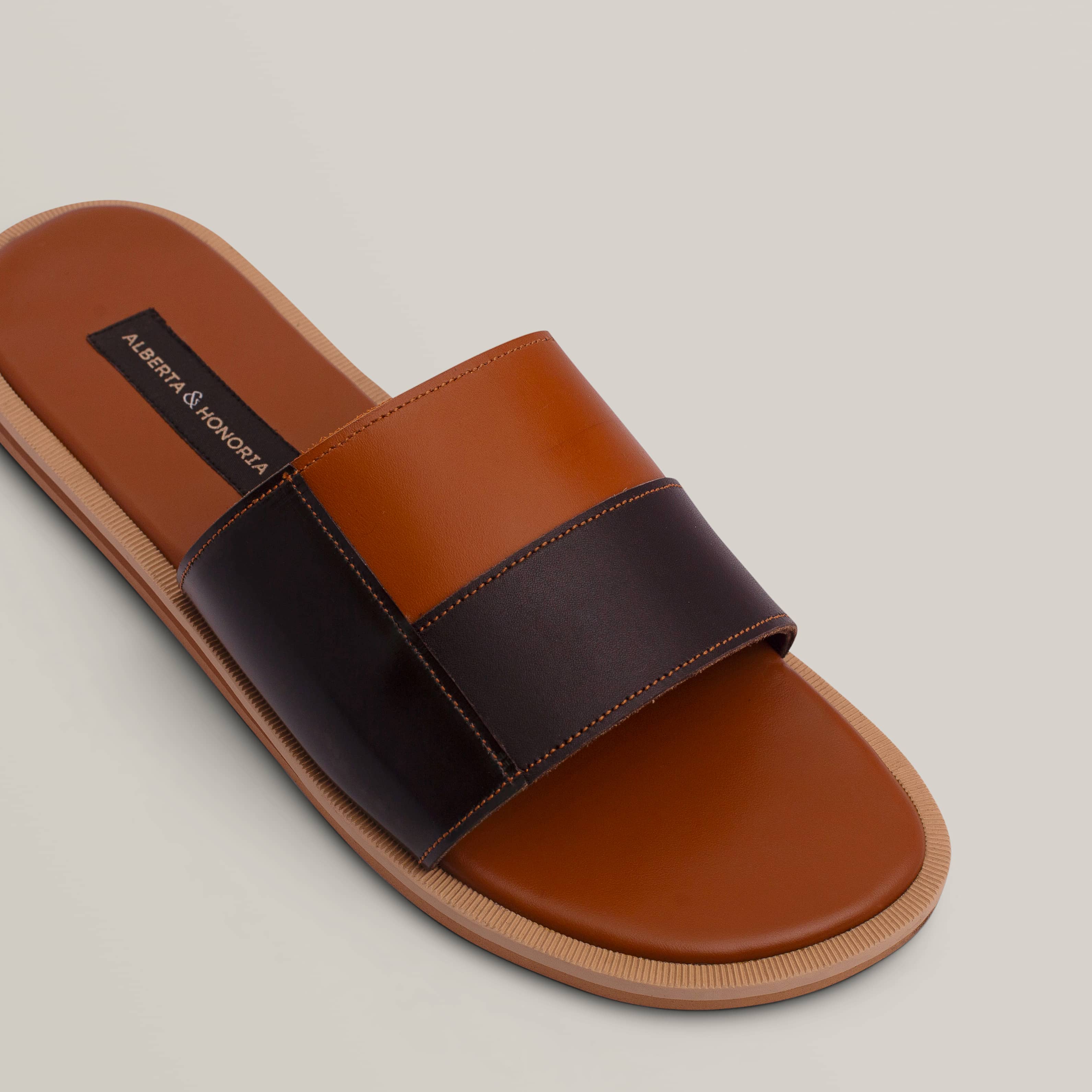 The Shehu is a composed meditation on earth tones: deep green, warm tan, and coffee brown layered with intention. Horizontal and vertical rectangular forms interlock in quiet geometry, traced with tan stitching that sharpens the silhouette. Grounded and assured, the design balances natural depth with graphic precision, allowing material and colour to lead the narrative. Inside, a supple calfskin lining and leather-wrapped multilayered insole bring softness and comfort beneath the expressive exterior. Structural integrity is delivered through a ridge welt and concealed metal shank, supported by a cushioned Marco-EVA midsole and finished with an anti-slip TPU crepe sole.
